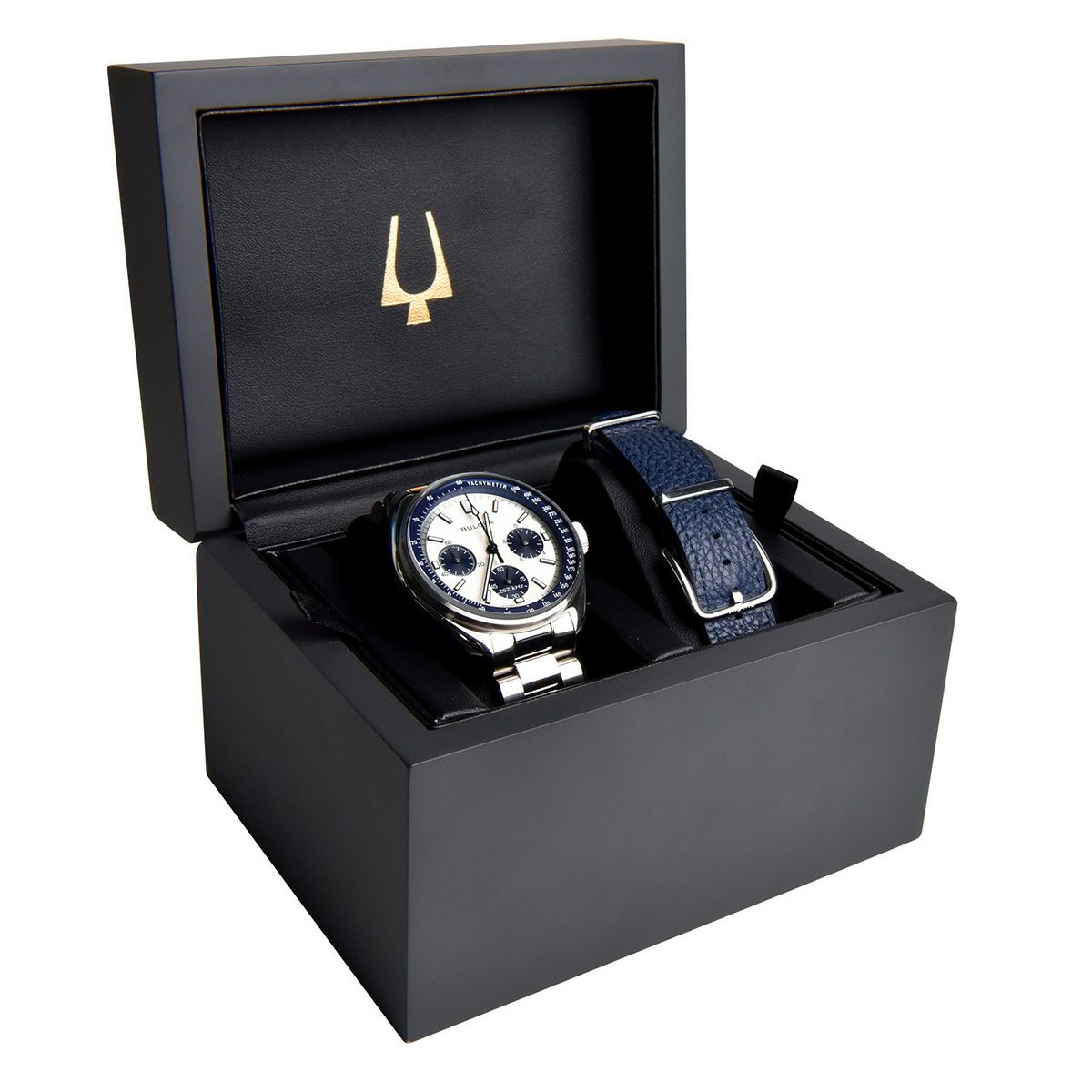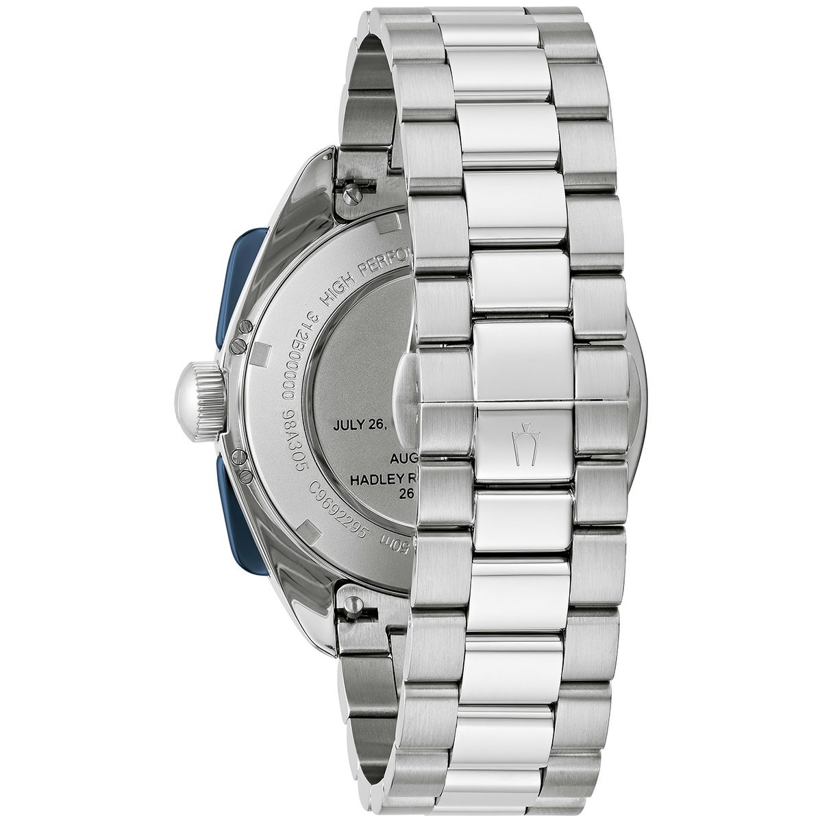 1971年にアメリカ、NASAの「アポロ15号」が月面着陸に成功した際に、船長が月面で使用したクロノグラフの時計、"ルナ パイロット クロノグラフ" 。当時のBULOVAロゴを採用、デイト表示のない文字盤はより忠実にオリジナルを再現しました。ブローバ独自の262KHz で振動する高精度ムーブメント(月差±5秒)が搭載された、ハイスペッククロノグラフウォッチです。ケース裏のピンをスライドするだけで、付属の肌なじみのよい柔らかなブルー牛革NATOストラップに簡単に交換可能です。