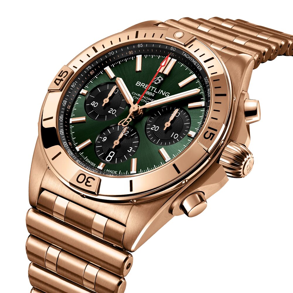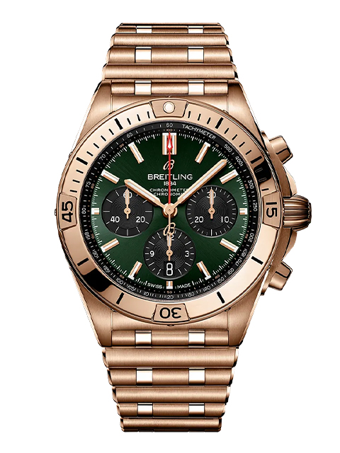 あらゆる要望に応える、ブライトリングの万能ウォッチ。 クロノマットは、ブライトリングの歴史の中で重要な位置を占めるモデルです。1984年は、極薄のクォーツ時計が隆盛を極めていた頃。素晴らしく均整の取れた機械式時計でブライトリングは大胆な賭けに出ました。 かの有名なイタリア空軍曲技飛行隊とのコラボレーションで1983年に開発・発売されたフレッチェ・トリコローリ・クロノグラフをもとにした新しいクロノマットは、100年にわたって築き上げてきたブライトリングのスタイルを祝福するものでした。同時に、これらの素晴らしい時計で世界的名声を築き上げてきたブランドにおける、機械式クロノグラフの本来の地位を取り戻したのです。 ステンレススチールから18Kレッドゴールドまで、種々の素材を揃えたクロノマットの特徴は、42 mmケースと4カ所にライダータブを配したアイコニックなベゼル。ダイヤルには豊富なカラーをご用意。クロノマットには独特な「ルーロー」ブレスレット(メタル製またはラバー製)がしっくりと馴染みます。クロノマットの駆動はCOSC公認クロノメーターのブライトリング マニュファクチュール キャリバー01です。