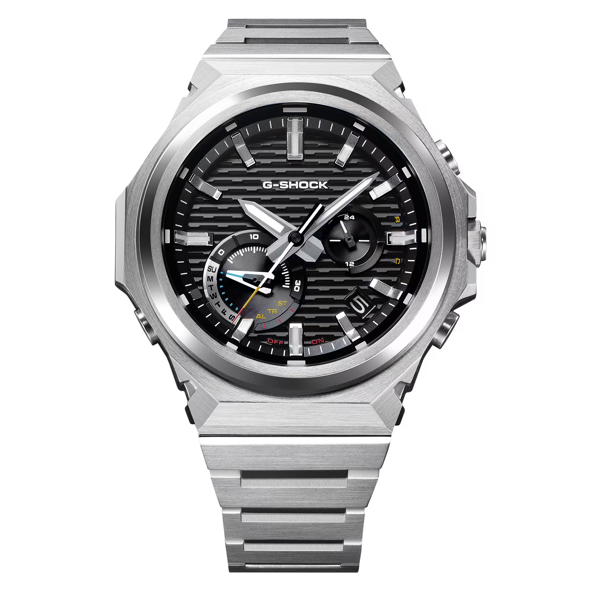 G-SHOCKのタフネス構造と機能美を受け継ぎつつ研ぎ澄まされたミニマルな表現で再構築したSLEEK STYLEです。 ロゴを排したベゼルは光の角度で表情を変え豊かな質感を演出。ステンレススチール製のバンドにはヘアライン仕上げとミラー仕上げを施し、三つ折れ式中留は端正なデザインとホールドが魅力です。 G-SHOCK初号機“DW-5000C”から継承したベゼルデザインやレンガパターンが、スポーティさも加えています。 メタルベゼルが衝撃をガードし、カーボンファイバー強化樹脂製のケースがモジュールを保護。さらに、ガラス接着方式や小型モジュールにより耐衝撃構造を実現しつつ厚みや重量を削減。快適な着け心地と実用性を両立しています。 ビジネスからカジュアル、アウトドアまで多くの瞬間に対応できる「オールラウンド・タイムピース」です。