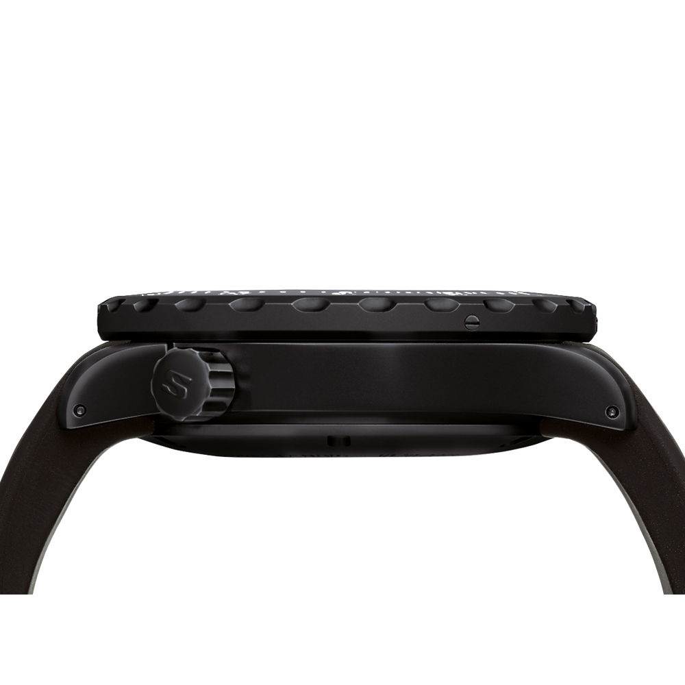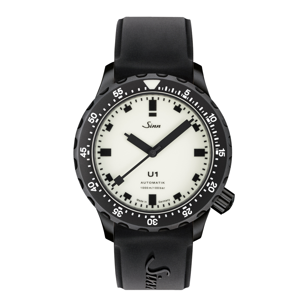 U1 S Lは視覚的にも強い存在感を放ちます。特徴であるデザインをシンプルにすることで、水中はもちろん、あらゆる場面で時計を着用することができます。その印象的な外観の裏には、純粋なSinnの技術が息づいています。ケースとリューズには卓越した耐海水性で知られる高強度・非磁性のドイツ潜水艦に用いるUボート・スチールを採用。テギメント・テクノロジーに基づく高品質なブラック・ハード・コーティングが、洗練の外観を実現しています。そしてSinnは信頼性への一切の妥協がないため、ベゼルは誤って落ちることがない特殊結合方式でケースに確実に固定しています。テストしていますか?もちろんテスト済です。第三者独立機関DNVにより、欧州潜水機器規格に基づく1,000m(=100気圧)までの耐圧性、急激な温度変化への耐性、機能性が認証されています。U1 S Lはあらゆる面で本当の深みを持つ時計といえます。