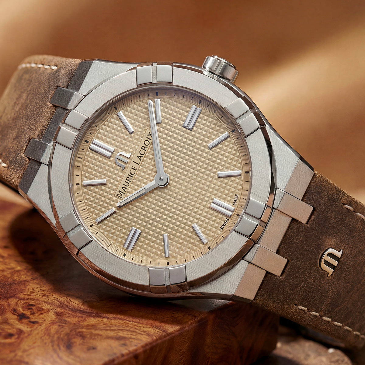 90年代を代表するモデル「カリプソ」に着想を得た「アイコン」は、それ自体がブランドの象徴となっています。大胆で都会的なスタイルを取り入れたデザインにより、コントラストを巧みに演出しています。他のモーリス・ラクロア ウォッチ同様、「アイコン」は、スイスのクラフツマンシップと高い知覚価値を融合させています。