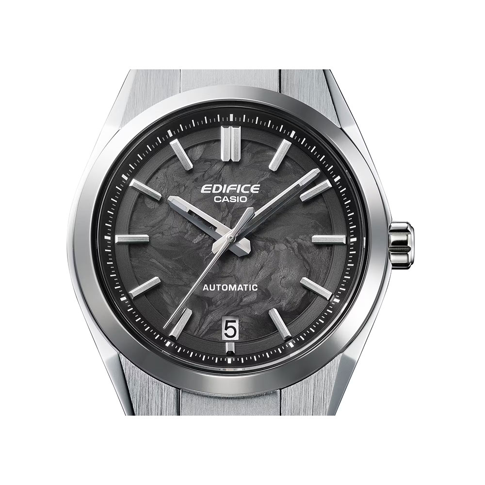 モータースポーツやクルマと時計の親和性を求めて挑戦し続けるEDIFICEから、フォージドカーボンケースを採用した3針アナログモデルです。 高級スポーツカーにも使用されるフォージドカーボンを採用し、スポーツカーの世界観をEDIFICEらしいスタイリングで表現しました。 心臓部にも車のようにエモーショナルな駆動方式を取り入れるべくメカニカルムーブメントを搭載。シースルーバックからムーブメントの動きを見ることができ、機械式ならではの魅力をお楽しみいただけます。