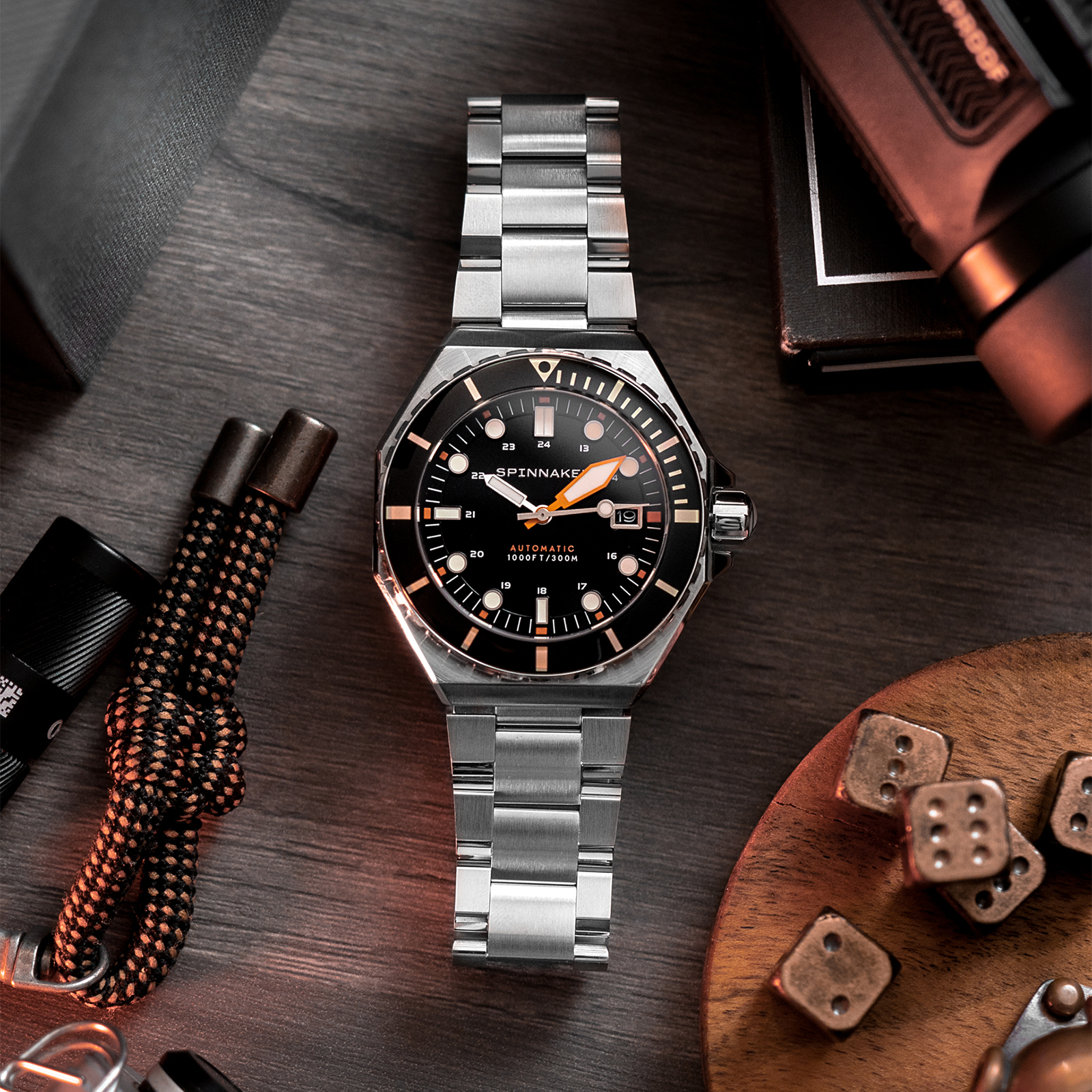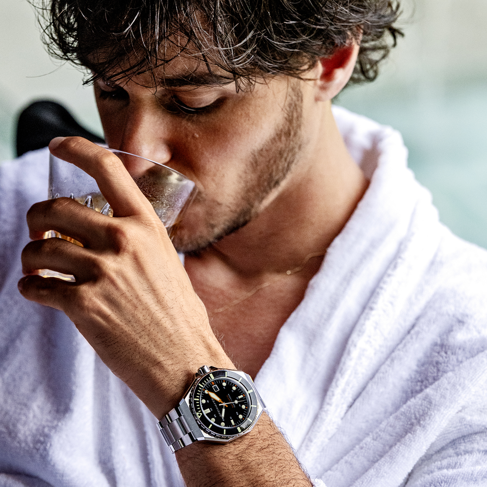 1970年代に流行した腕時計のデザインに着想を得た八角形ケースを採用した「DUMAS」は、ヴィンテージな趣きとモダンなスタイルを併せ持つ30気圧防水の機械式ダイバーズウォッチです。