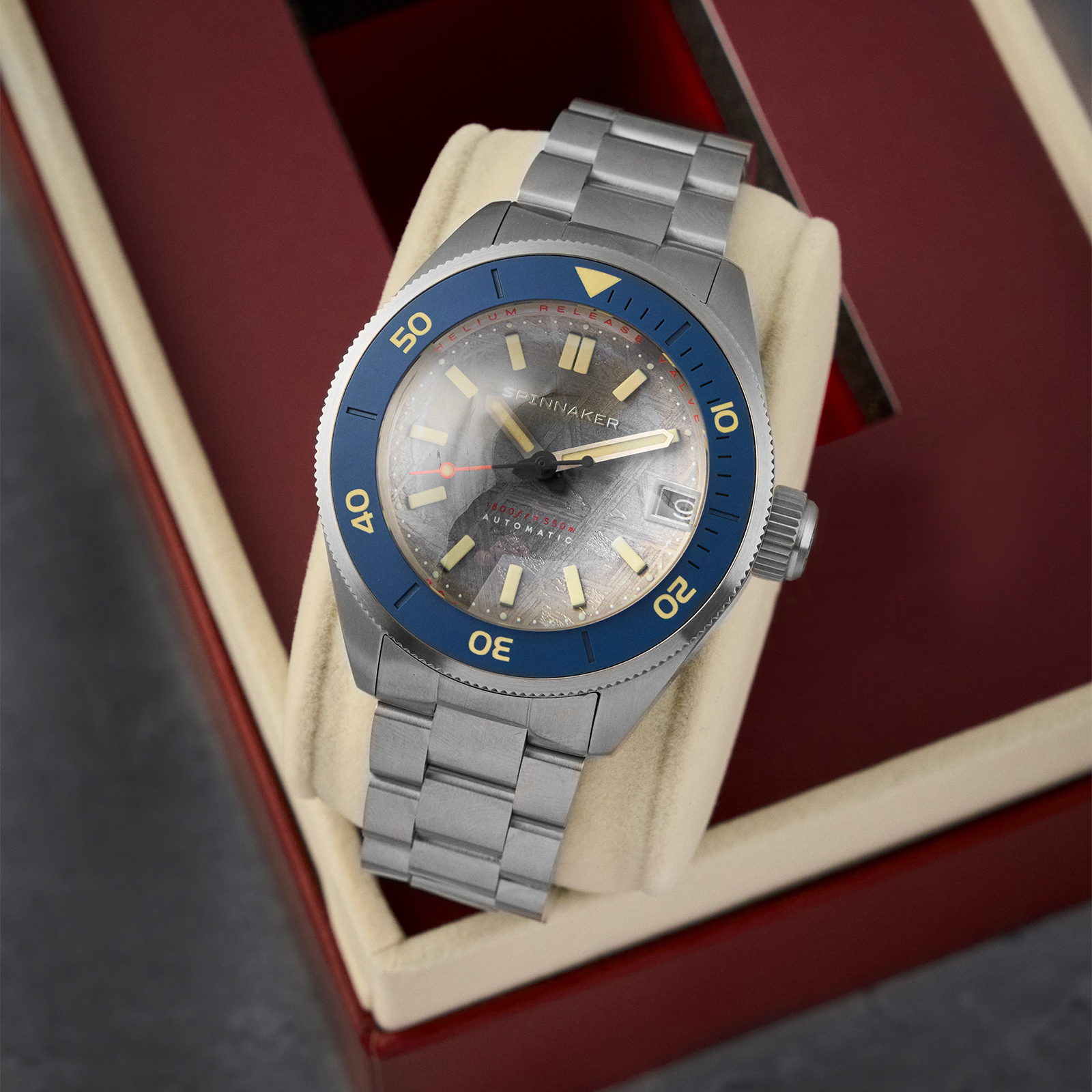 550m防水という、プロフェッショナルに向けた実用的なツールウォッチとしてのスペックも健在だ。100m超の深さまで潜るために必要なヘリウムリリースバルブも実装。内部に入り込んだヘリウムを安全に排出する機構が設けられ、深深度での活動をサポートする。