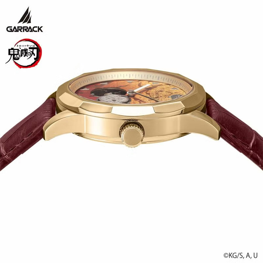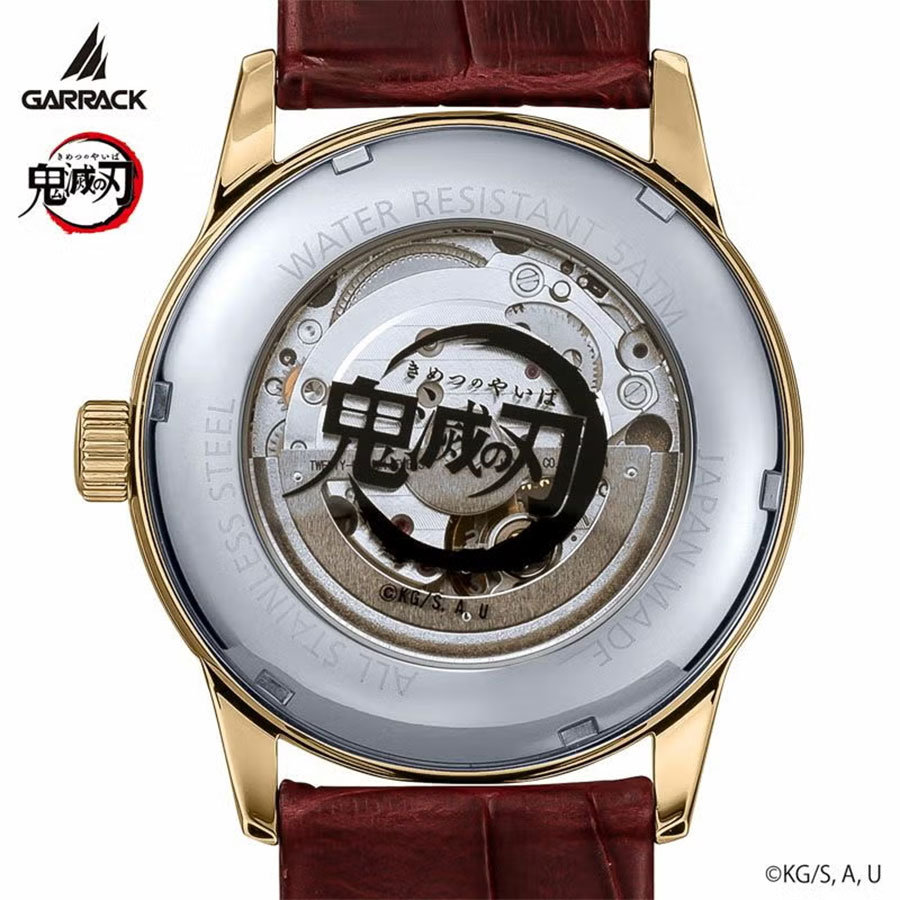 日本の伝統工芸「金沢箔」を使用し、アニメ「鬼滅の刃」キャラクターの特徴を再現した自動巻き機械式時計。文字盤を熟練の職人が一つ一つ手作業で仕上げた芸術品ともいえる逸品。