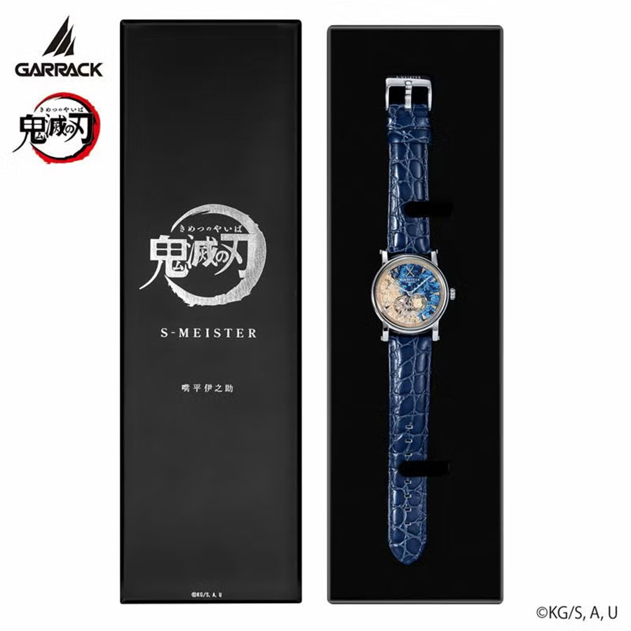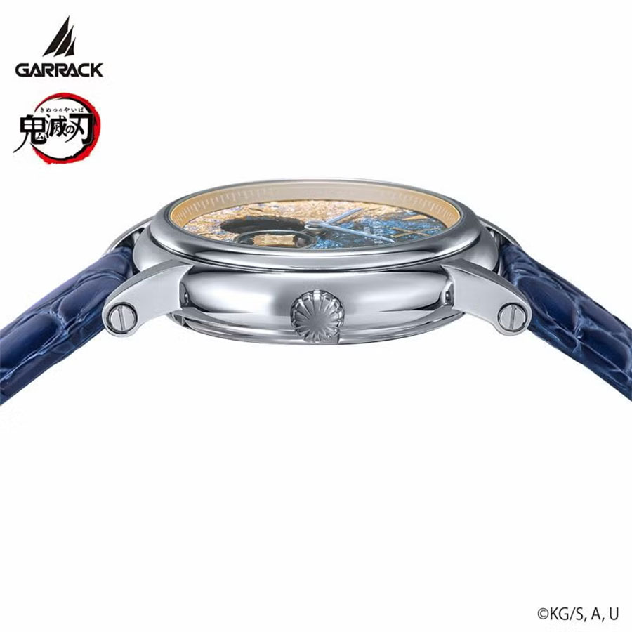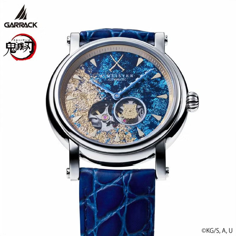 日本の伝統工芸「金沢箔」を使用し、アニメ「鬼滅の刃」キャラクターの特徴を再現した自動巻き機械式時計。文字盤を熟練の職人が一つ一つ手作業で仕上げた芸術品ともいえる逸品。
