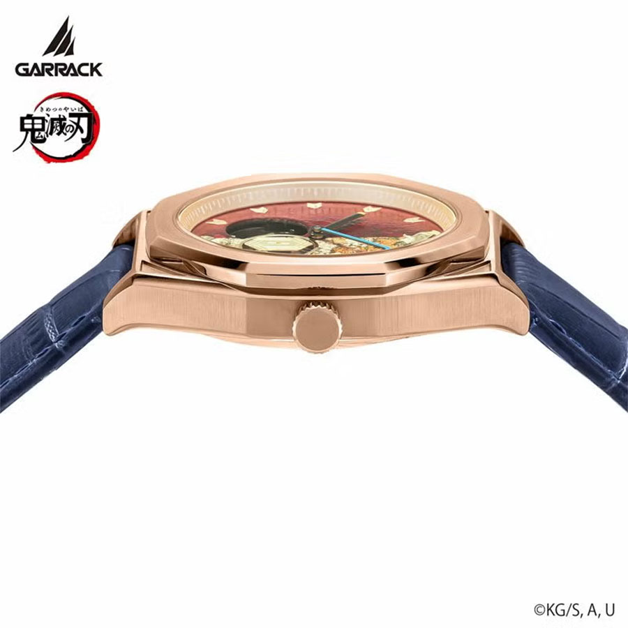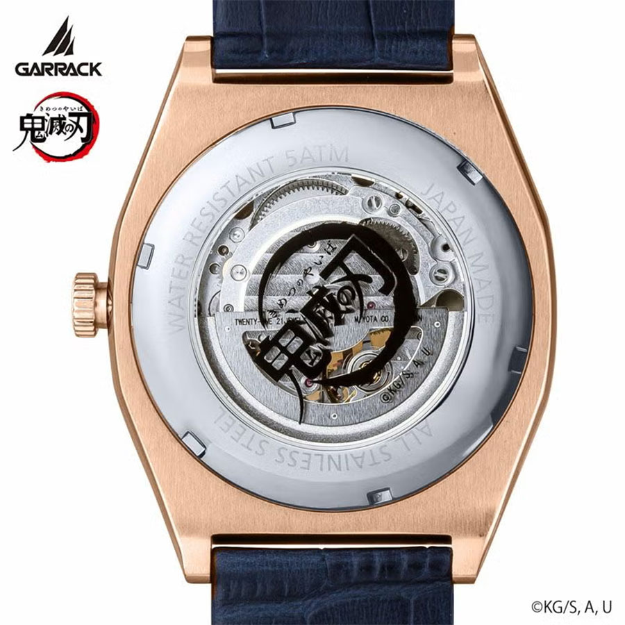 日本の伝統工芸「金沢箔」を使用し、アニメ「鬼滅の刃」キャラクターの特徴を再現した自動巻き機械式時計。文字盤を熟練の職人が一つ一つ手作業で仕上げた芸術品ともいえる逸品。